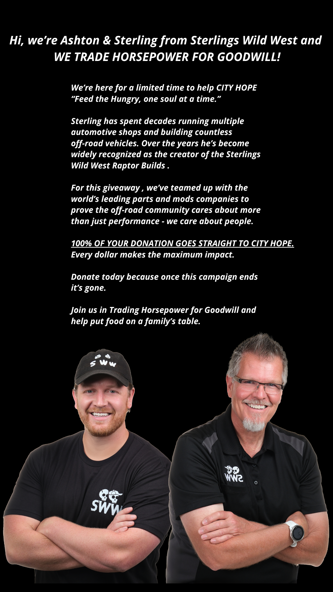 100% of your donation goes STRAIGHT to CITY HOPE!